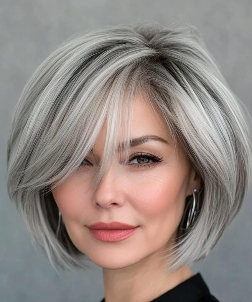 La coupe carré cheveux gris 2027 célèbre la beauté naturelle des cheveux argentés. De plus en plus de femmes choisissent d’assumer leurs cheveux gris avec style et le carré est une coupe idéale pour les sublimer. Les versions légèrement dégradées ou texturées apportent de la douceur au visage. Cette coiffure symbolise élégance, confiance et modernité.