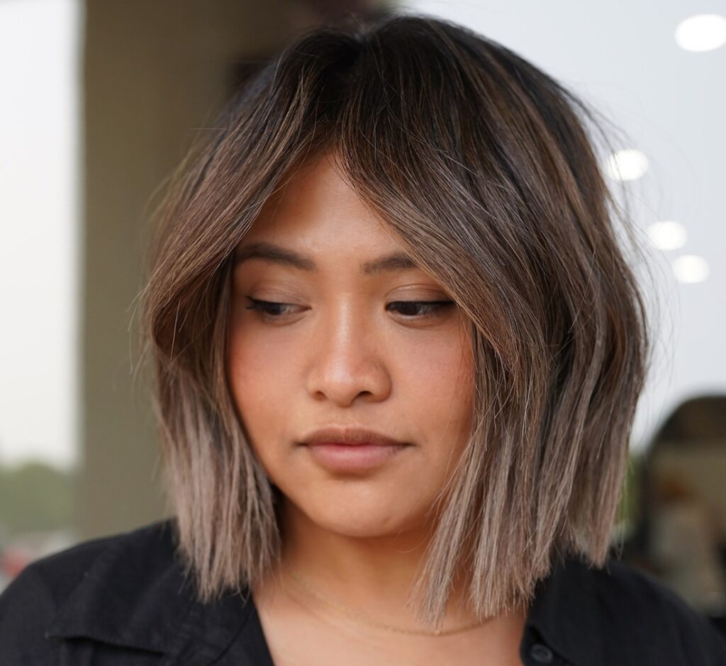 La coupe carré asymétrique 2027 est parfaite pour celles qui veulent adopter un style unique et contemporain. Avec une longueur légèrement différente d’un côté à l’autre, cette coupe apporte du dynamisme et de la personnalité. Elle peut être portée lisse pour un effet sophistiqué ou texturée pour un look plus moderne. L’asymétrie devient un détail très apprécié dans les coupes au carré.