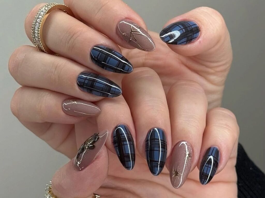 L’ongle hiver 2027 mise sur des couleurs profondes et sophistiquées comme le bleu nuit, le bordeaux et le noir. Les finitions métalliques, pailletées ou effet glacé sont très présentes, rappelant l’ambiance des fêtes et de la neige. En 2027, les manucures hivernales jouent avec la lumière pour créer un effet chic et luxueux.